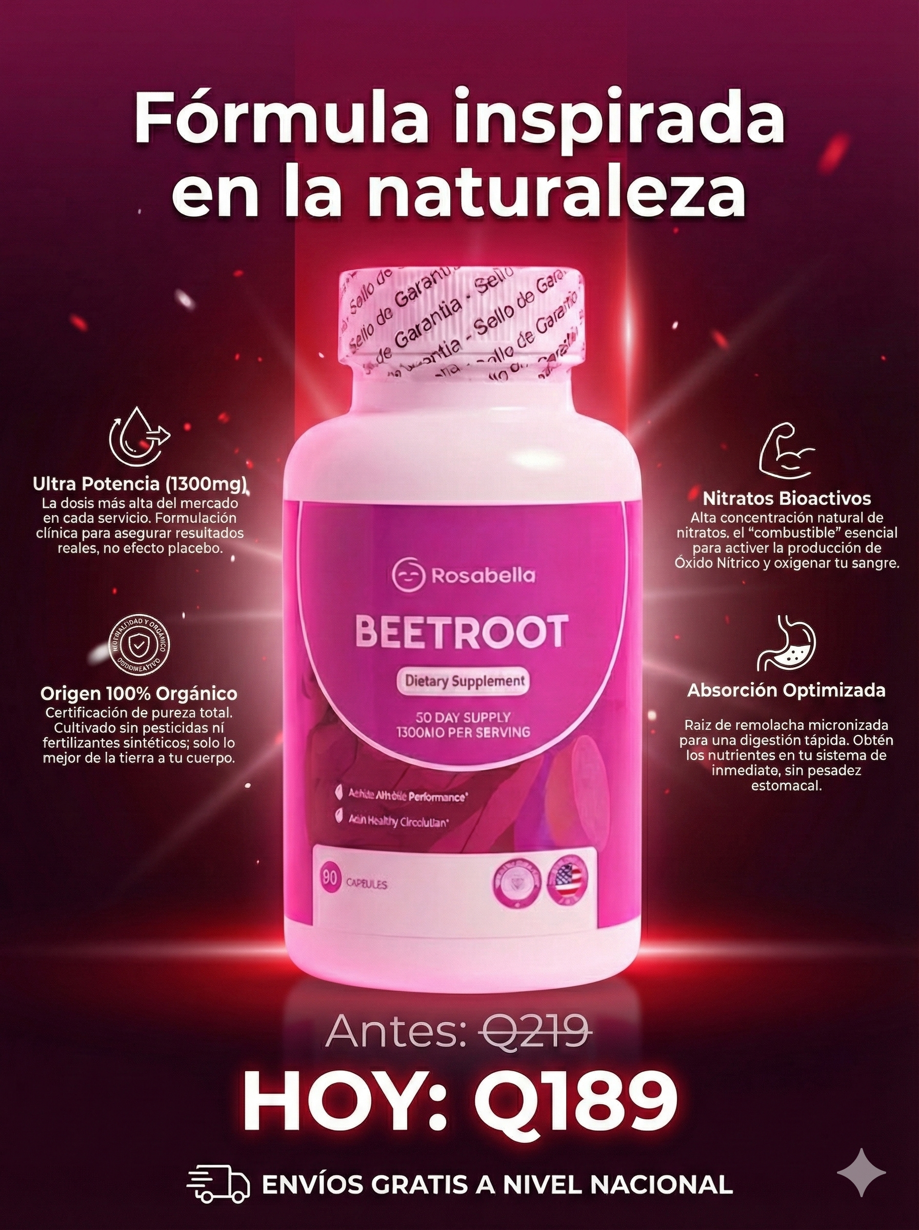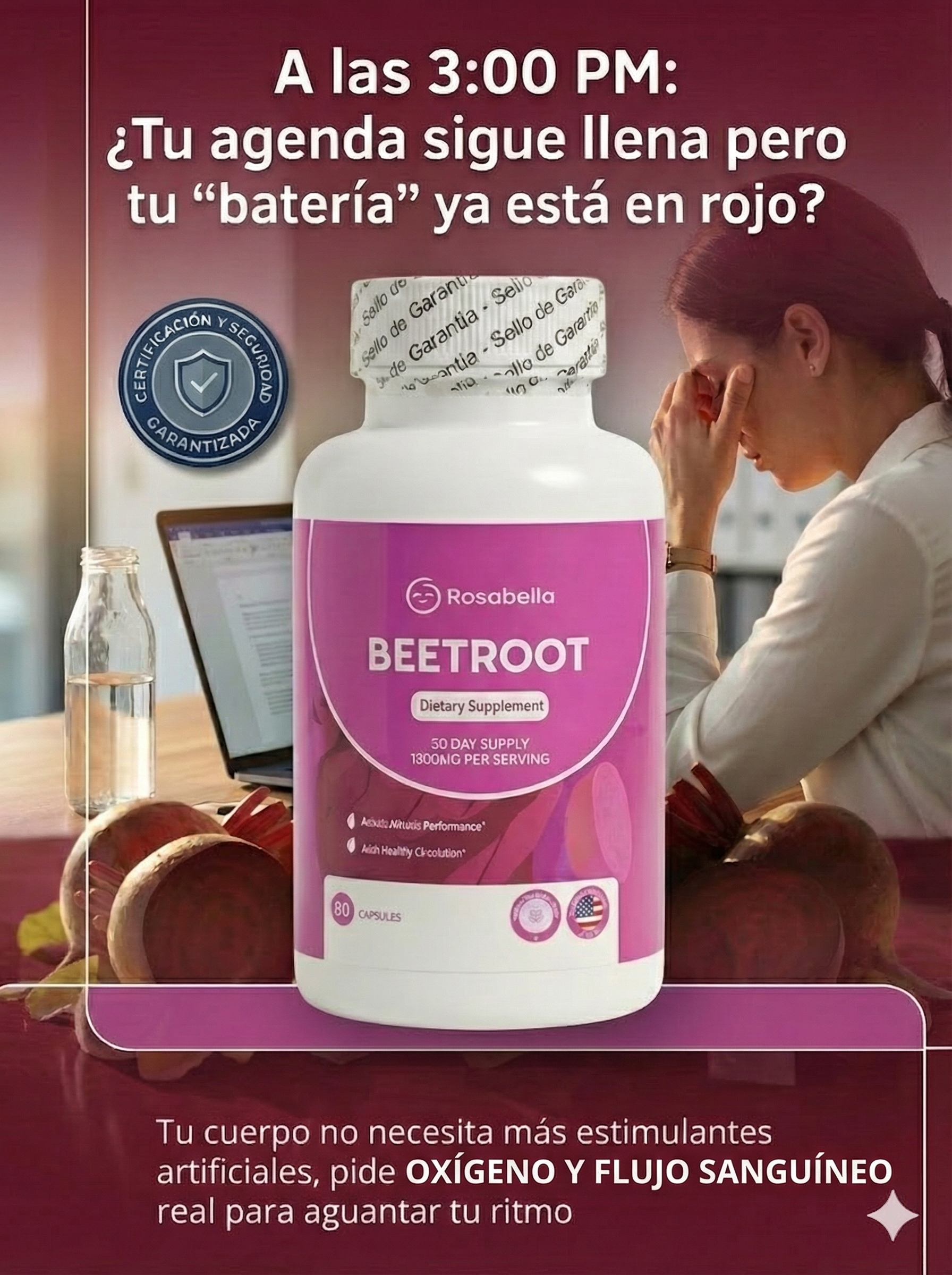 BeetRoot Rosabella® x 60 Cápsulas Orgánicas - Raíces de Remolacha