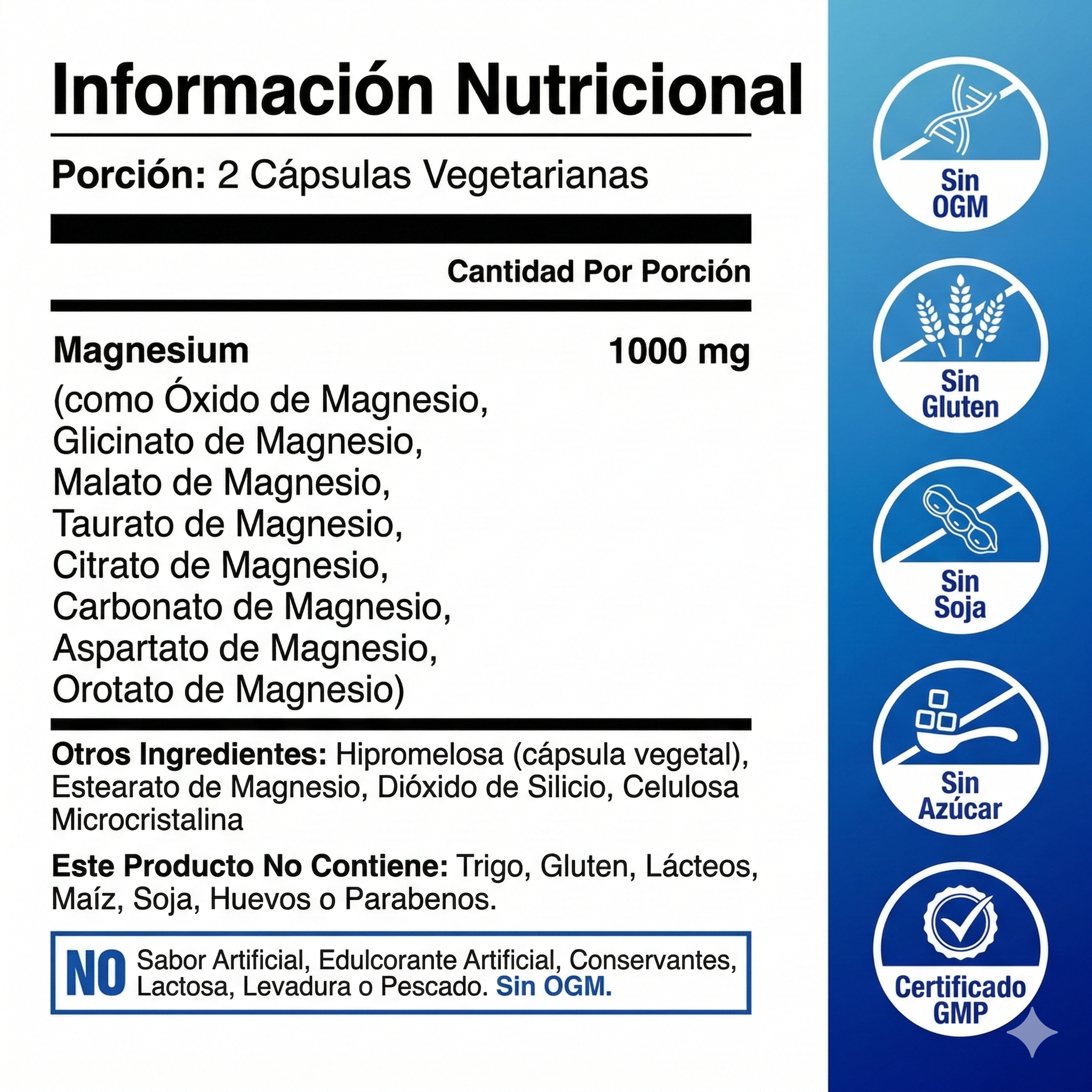 A diferencia de otros suplementos de magnesio que su cuerpo no puede absorber, esta fórmula le brinda las 8 formas más importantes de magnesio, en la más pura calidad y en las cantidades adecuadas que su cuerpo necesita.